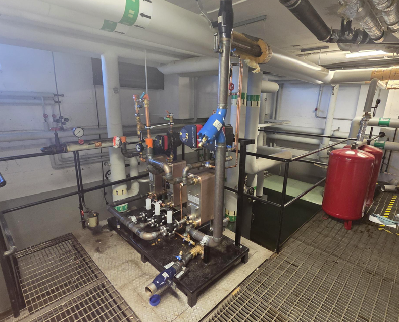 Just nu pågår ett utbyte av fjärrvärmeväxlaren i undercentralen på fastigheten Riddaren, Hovsvägen 4.